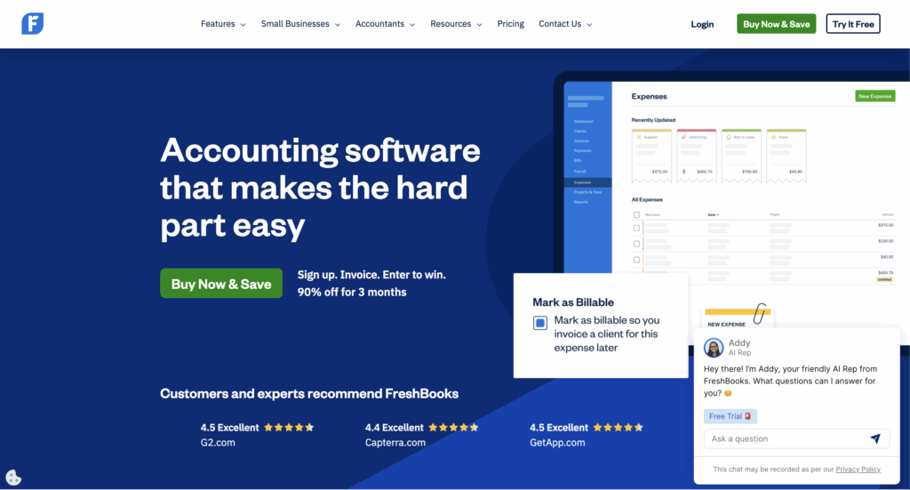 FreshBooks is an accounting and invoicing tool tailored to freelancers and small service businesses. Its new AI features make billing and financial tracking even easier.